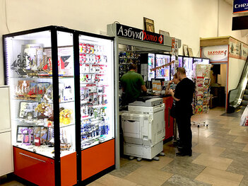 Последний вагон из центра, из стеклянных дверей метро налево, по лестнице сразу направо, напротив выхода из перехода будет торговый центр "Снежная Королева", внутри у эскалатора фотосалон "Азбука Фото".