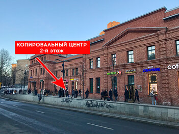 выход №4, вход в торговые ряды, 2-й этаж, копировальный центр Распечатка.