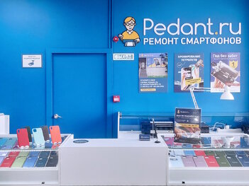 выход №9. Пройти прямо 60 метров, Вход в сервисный центр находится в конце здания, ориентируйтесь на вывеску "Pedant.ru Ремонт смартфонов".