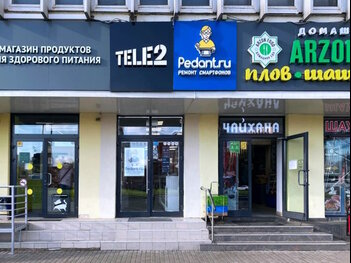 выход №1. Повернуть налево и пройти 80 метров прямо до вывески "Pedant.ru Ремонт смартфонов". Сервис находится в ТЦ Крона, вход с улицы.